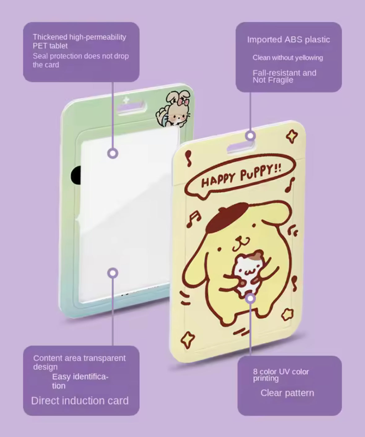 Porte-cartes PomPomPurin jaune au look kawaii, muni d’une lanière pour un port facile autour du cou. Parfait pour conserver vos cartes de cantine, de transport, de crédit ou de bureau, il vous suit partout, même lors de vos déplacements. Pratique, charmant et idéal pour un usage quotidien.